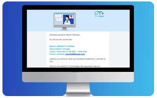 Portal Médico es perfecto para el manejo del control de citas, historia clínica para citas de primeras y sucesivas, atención de consultas en sitio y telemedicina (video y chat integrado), así como también generación de récipes, informes médicos y solicitudes de laboratorio e imágenes.